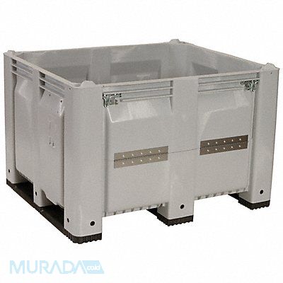 J2333 Bulk Container Color Gray Container Wall Type Solid Folded Depth 40 in Folded Height 31 in Folded Width 48 in Fork Entry 4-Way Entry Fork Pockets Yes Maximum Operating Temperature 140 Degrees F Minimum Operating Temperature -40 Degrees F Mobility Stationary Number of Drop Doors 1 Overall Height 31 in Overall Length 48 in Overall Width 40 in Stackable Yes Stacking Capacity 9 000 lb Volume Capacity 25.4 cu ft Weight Capacity 1 500 lb Includes Lid No Bottom Inside Length 45 in