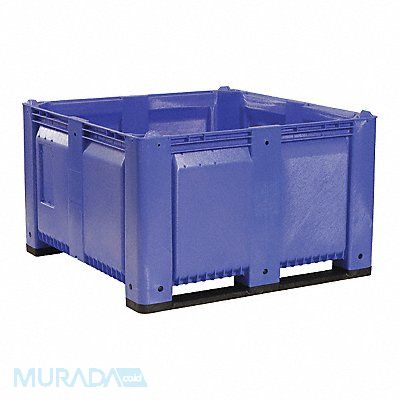 J2330 Bulk Container Color Blue Container Wall Type Solid Folded Depth 48 in Folded Height 28 1/2 in Folded Width 48 in Fork Entry 4-Way Entry Fork Pockets Yes Maximum Operating Temperature 140 Degrees F Minimum Operating Temperature -40 Degrees F Mobility Stationary Overall Height 28 1/2 in Overall Length 48 in Overall Width 48 in Stackable Yes Stacking Capacity 14 000 lb Volume Capacity 28.7 cu ft Weight Capacity 1 500 lb Includes Lid No Bottom Inside Length 44 3/4 in