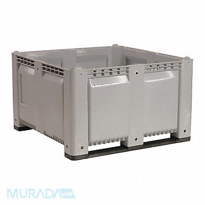 J2330 Bulk Container Color Gray Container Wall Type Solid Folded Depth 48 in Folded Height 28 1/2 in Folded Width 48 in Fork Entry 4-Way Entry Fork Pockets Yes Maximum Operating Temperature 140 Degrees F Minimum Operating Temperature -40 Degrees F Mobility Stationary Overall Height 28 1/2 in Overall Length 48 in Overall Width 48 in Stackable Yes Stacking Capacity 14 000 lb Volume Capacity 28.7 cu ft Weight Capacity 1 500 lb Includes Lid No Bottom Inside Length 44 3/4 in
