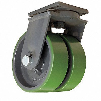 Swivel Easy-Turn Standard Plate Caster Load Rating 9600 lb Swivel Lock Type No Lock Included Wheel Dia 12 in Wheel Width 4 in Wheel/Tread Material Polyurethane Wheel Core Material Cast Iron Non-Marking Yes Number of Wheels 2 Caster Brake Type No Brake Included Tread Shape Standard