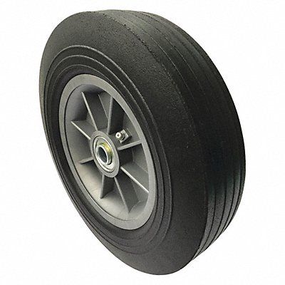 Flat-Free Solid Rubber Wheel 550 lb Load Rating Ribbed Tread 10 in Wheel Dia 1 7/8 in Wheel Width For Axle Size 5/8 in 10x2.5 Standard Tire Rim Type Offset Hub Position 2 1/4 in Hub Length Plastic Hub Material No Non-Marking