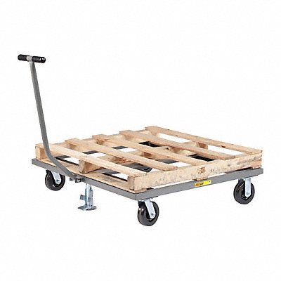Open-Deck Steel Pallet Dolly with Handle Load Capacity 3 600 lb Deck Length 48 in Deck Width 42 in Deck Height 9 in Deck Profile Flush Deck Surface Smooth Deck Type Open For Pallet Type Closed/Open Center Opening Length 45 in Center Opening Width 27 in Maximum Deck Height 9 in Minimum Deck Height 9 in Frame Material Steel Frame Finish Powder Coated Caster Wheel Dia 6 in Caster/Roller Configuration (2) Swivel (2) Axle-Mounted with Floor Lock Color Gray Overall Length 48 in