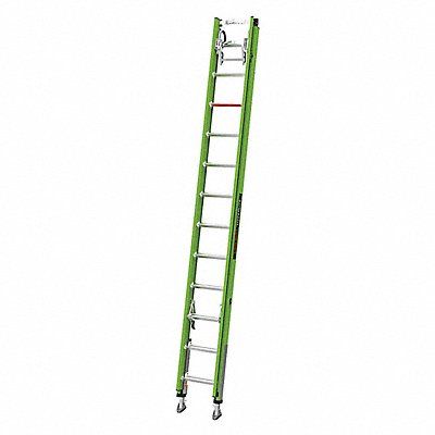 Extension Ladder Material Fiberglass Industry Ladder Size 24 ft Extended Ladder Height 24 ft ANSI Type IA Load Capacity 300 lb Adjustable Increments 12 in Bottom Width 17 1/2 in HyperLite Series Rail Type Non Conductive Shoe Design Sure-Set(TM) Includes Cable Hook Claw Dual Ratchet Levelers V-Bar Rung Shape Step Closed Height 12 ft 6 1/2 in Section Length 12 ft Net Weight 55 lb Rung/Step Spacing 12 in