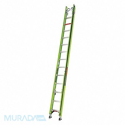 Extension Ladder Material Fiberglass Industry Ladder Size 28 ft Extended Ladder Height 28 ft ANSI Type IA Load Capacity 300 lb Adjustable Increments 12 in Bottom Width 21 1/2 in HyperLite Series Rail Type Non Conductive Shoe Design Sure-Set(TM) Includes Cable Hook Claw Pole Strap Rung Shape Step Closed Height 14 ft 9 in Section Length 14 ft Net Weight 52 lb Rung/Step Spacing 12 in