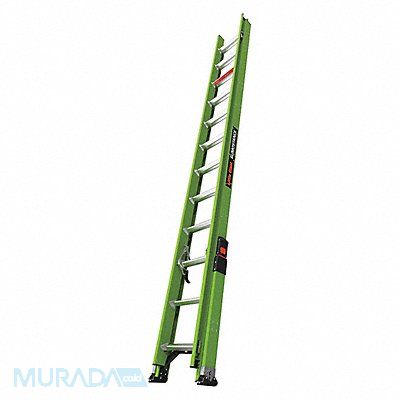 Extension Ladder Material Fiberglass Industry Ladder Size 24 ft Extended Ladder Height 24 ft ANSI Type IA Load Capacity 300 lb Adjustable Increments 12 in Bottom Width 21 1/2 in HyperLite SumoStance Series Rail Type Non Conductive Shoe Design Sure-Set(TM) Rung Shape Step Closed Height 12 ft 6 1/2 in Section Length 12 ft Net Weight 52 lb Rung/Step Spacing 12 in