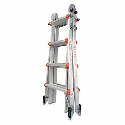 Multipurpose Ladder Extended Ladder Height 15 ft ANSI Type IA Material Aluminum Load Capacity 300 lb Stepladder Height 4 to 7 ft Scaffold Height 1 to 3 ft Closed Depth 8 in Closed Height 4 ft 9 in Bottom Width 24 1/2 in Rail Type Aluminum Series Aircraft Support Standards OSHA and ANSI 14.2 Includes Instruction Manual Ladder Configurations 90 Degrees Extension Scaffold Staircase Stepladder Net Weight 40 lb Rung/Step Spacing 12 in