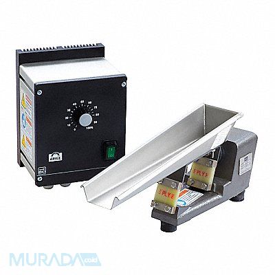Vibratory Feeder Overall Height 6 3/8 in Discharge Height 4 5/16 in Feed Rate 1 250 lb/hr 1 in Trough Height 12 in Trough Length 1 1/2 in Voltage 115V AC Overall Width 3 1/4 in Overall Length 15 9/16 in
