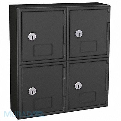 Cell Phone Locker Frame Assembled Assembled Leg Height Not Applicable Number of Tiers 2 Number of Units Wide 2 Handle Type None Locker Color Black Mounting Location Wall-Mount Mounting Style Surface Number of Lockers 4 Opening Depth 2 7/8 in Opening Height 5 1/2 in Opening Width 5 1/8 in Overall Depth 4 in Overall Height 13 1/2 in Overall Width 12 in Locker Finish Matte Locker Material ABS Plastic Door Type Solid Lock Type Keyed
