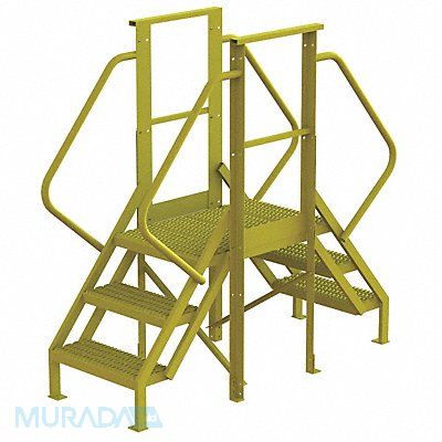 Crossover Bridge Vertical Clearance 28 in Span 20 in Platform Height 30 in Platform Depth 20 in Number of Steps 3 Bottom Width 30 in Load Capacity 1 000 lb Overall Span 20 in Overall Height 72 in Handrail Height 42 in Climbing Angle 50 Degrees Step Tread Perforated Step Width 24 in Step Depth 10 in Material Steel Finish Powder Coated Yellow Color Yellow Standards OSHA
