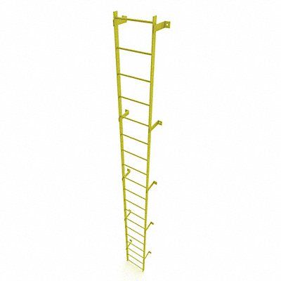 Fixed Ladder Walk-Thru Included No Exit Top Overall Height 19 ft Overall Width 25 in Material Steel Load Capacity 500 lb Number of Steps 19 Top Step Height 18 ft Rung Dia 3/4 in Rung/Step Spacing 12 in Step Width 18 in Finish Safety Yellow Standards ANSI OSHA Compliant Manufacturers Warranty Length 1 yr