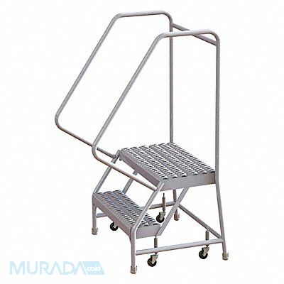 Rolling Ladder Material Aluminum Platform Height 20 in Handrails Included Yes Handrail Height 32 in Overall Height 52 in Number of Steps 2 Assembled Load Capacity 350 lb Step Tread Serrated Platform Depth 14 in Platform Width 16 in Bottom Width 20 in Base Depth 23 in Overall Width 20 in Climbing Angle 56 Degrees Step Depth 7 in Step Width 16 in Ladder Actuation Spring-Loaded Casters Finish Aluminum Mill Color Aluminum Standards ANSI OSHA Includes Crutch Tips