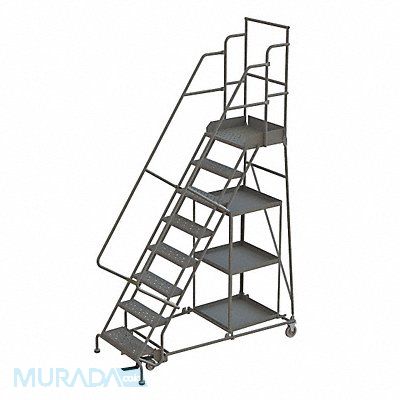 Stock Picking Rolling Ladder Material Steel Platform Height 80 in Handrails Included Yes Handrail Height 36 in Overall Height 116 in Number of Steps 8 Unassembled Load Capacity 450 lb Step Tread Perforated Platform Depth 20 in Platform Width 24 in Bottom Width 35 in Base Depth 73 in Overall Width 35 in Climbing Angle 56 Degrees Step Depth 7 in Step Width 24 in Ladder Actuation Foot Activated Step Lock Finish Powder Coated Color Gray Standards ANSI OSHA
