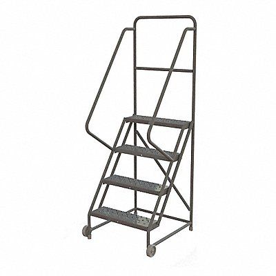 Tilt and Roll Ladder Material Steel Platform Height 40 in Handrails Included Yes Handrail Height 36 in Overall Height 76 in Number of Steps 4 Unassembled Load Capacity 450 lb Step Tread Perforated Platform Depth 10 in Platform Width 24 in Bottom Width 31 in Base Depth 37 in Overall Width 31 in Climbing Angle 56 Degrees Step Depth 7 in Step Width 24 in Ladder Actuation None Finish Powder Coated Color Gray Standards ANSI OSHA Includes Crutch Tips