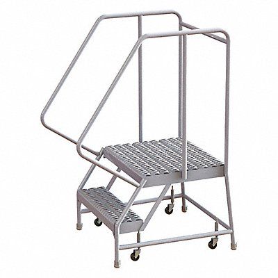 Rolling Ladder Material Aluminum Platform Height 20 in Handrails Included Yes Handrail Height 32 in Overall Height 52 in Number of Steps 2 Assembled Load Capacity 350 lb Step Tread Serrated Platform Depth 21 in Platform Width 16 in Bottom Width 20 in Base Depth 30 in Overall Width 20 in Climbing Angle 56 Degrees Step Depth 7 in Step Width 16 in Ladder Actuation Spring-Loaded Casters Finish Aluminum Mill Color Aluminum Standards ANSI OSHA Includes Crutch Tips