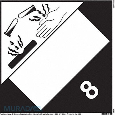 DOT Container Placard Language English Container Label/Placard Type Hazardous Class Hazard Class Class 8 (Corrosive) DOT/UN Product Form Placard Message Corrosive (Blank UN) Label Width 10 3/4 in Label Height 10 3/4 in Material Vinyl