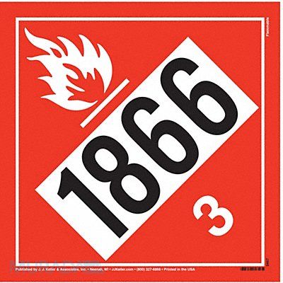 DOT Container Placard Language English Container Label/Placard Type Hazardous Class Hazard Class Class 3 (Flammable Liquids) DOT/UN Product Form Placard Message Flammable Liquid UN1866 Label Width 10 3/4 in Label Height 10 3/4 in Material Vinyl