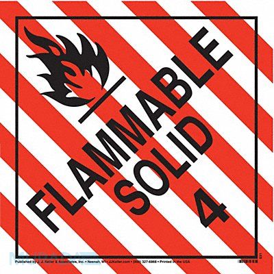 DOT Container Placard Language English Container Label/Placard Type Hazardous Class Hazard Class Class 4 (Flammable Solids) DOT/UN Product Form Placard Message Flammable Solid Label Width 10 3/4 in Label Height 10 3/4 in Material Tagboard