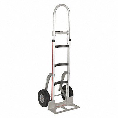 Corrosion-Resistant Modular Aluminum General Purpose Hand Truck Load Capacity 500 lb Overall Depth 25 1/2 in Overall Height 60 in Overall Width 20 3/4 in Nose Plate Depth 7 1/2 in Nose Plate Width 18 in Nose Plate Type Open Straight With Wheel Fenders Frame Type Rounded Back Handle Type Continuous Frame Single Pin Axle-Mounted Wheel Dia 10 in Axle-Mounted Wheel Type Pneumatic Includes Foot Assist Without Foot Assist Includes Lever Pushoff Without Lever Pushoff