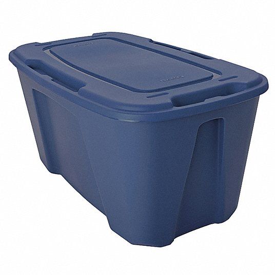 Storage Tote Includes Lid Yes Material Plastic Body Color Blue Lid Color Blue Nestable Yes Overall Height 18 1/2 in Overall Length 38 1/8 in Overall Width 24 in Resistant To Impact Stackable Yes Volume Capacity 49 gal Includes Lid