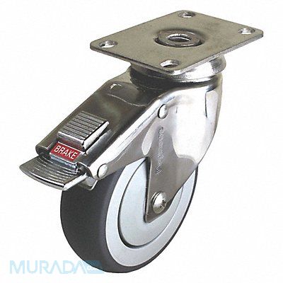 Swivel Antimicrobial Corrosion- Debris-Resistant Medical Plate Caster Load Rating 190 lb Swivel Lock Type Total Lock Wheel Dia 4 in Wheel Width 1 1/4 in Wheel/Tread Material Thermoplastic Rubber Wheel Core Material Plastic Non-Marking Yes Number of Wheels 1 Caster Brake Type Total Lock Brake Tread Shape Standard