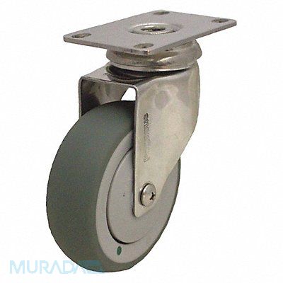 Swivel Antimicrobial Corrosion- Debris-Resistant Medical Plate Caster Load Rating 220 lb Swivel Lock Type No Lock Included Wheel Dia 5 in Wheel Width 1 1/4 in Wheel/Tread Material Thermoplastic Rubber Wheel Core Material Plastic Non-Marking Yes Number of Wheels 1 Caster Brake Type No Brake Included Tread Shape Standard