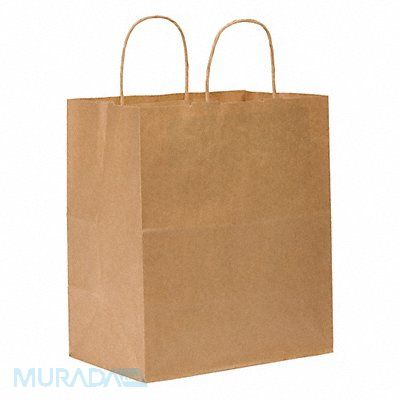 Merchandise Bags With Handle Bag Type Paper Twist Handle Type Kraft Width 10 in Depth 6 3/4 in Height 12 in 60# Basis Weight 57 lb Bag Bottom Type Flat Shopping Bag Material Paper Package Configuration Bundle Recycled Content Yes Weight Capacity 10 lb FDA Compliant Yes Package Quantity 250