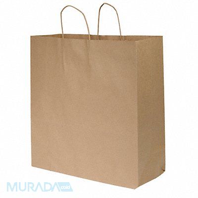 Merchandise Bags With Handle Bag Type Paper Twist Handle Type Kraft Width 18 in Depth 7 in Height 18 3/4 in 70# Basis Weight 70 lb Bag Bottom Type Flat Shopping Bag Material Paper Package Configuration Bundle Recycled Content Yes Weight Capacity 18 lb FDA Compliant Yes Package Quantity 200