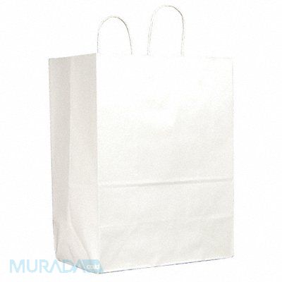 Merchandise Bags With Handle Bag Type Paper Twist Handle Type White Width 13 in Depth 7 in Height 17 in 65# Basis Weight 65 lb Bag Bottom Type Flat Shopping Bag Material Paper Package Configuration Bundle Recycled Content No Weight Capacity 13 lb FDA Compliant Yes Package Quantity 250