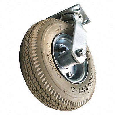 Plate Caster with Pneumatic Wheels Load Rating Range 0 to 299 lb Load Rating 220 lb Tread Sawtooth Wheel Dia 8 3/4 in Wheel Width 2 1/2 in Inside Bolt Hole Spacing 3 in x 3 in Outside Bolt Hole Spacing 2-5/8 in x 3-5/8 in Caster Brake Type No Brake Included Caster Product Group Swivel Caster Caster Sub-Type Swivel Non-Marking No Wheel/Tread Material Rubber Tire Rim Dia 4 in Tire Thickness 1/4 in Frame Finish Zinc Plated Tread Color Gray Swivel Raceway Type Double Ball