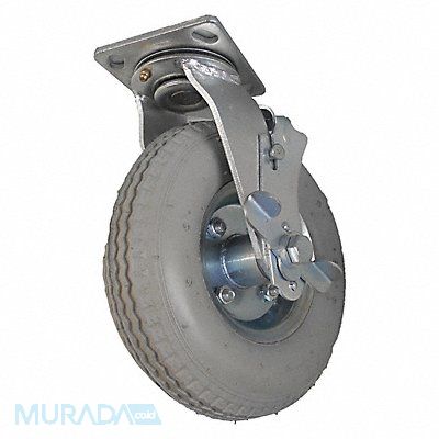 Plate Caster with Pneumatic Wheels Load Rating Range 0 to 299 lb Load Rating 80 lb Tread Sawtooth Wheel Dia 8 3/4 in Wheel Width 2 1/2 in Inside Bolt Hole Spacing 3 in x 3 in Outside Bolt Hole Spacing 2-5/8 in x 3-5/8 in Caster Brake Type Side Pedal Brake Caster Product Group Swivel Caster with Brake Caster Sub-Type Swivel Non-Marking No Wheel/Tread Material Rubber Tire Rim Dia 4 in Tire Thickness 1/4 in Frame Finish Zinc Plated Tread Color Gray Swivel Raceway Type Double Ball