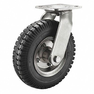 Plate Caster with Pneumatic Wheels Load Rating Range 0 to 299 lb Load Rating 200 lb Tread Diamond Wheel Dia 6 in Wheel Width 2 in Inside Bolt Hole Spacing 3 in x 3 in Outside Bolt Hole Spacing 2-5/8 in x 3-5/8 in Caster Brake Type No Brake Included Caster Product Group Swivel Caster Caster Sub-Type Swivel Non-Marking No Wheel/Tread Material Rubber Tire Rim Dia 4 in Tire Thickness 1/4 in Frame Finish Zinc Plated Tread Color Black Swivel Raceway Type Double Ball