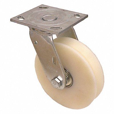 Swivel V-Groove Track-Wheel Plate Caster Load Rating 1540 lb Swivel Lock Type No Lock Included Wheel Dia 5 in Wheel Width 2 in Wheel/Tread Material Nylon Wheel Core Material Nylon Non-Marking Yes Number of Wheels 1 Caster Brake Type No Brake Included Tread Shape V-Groove