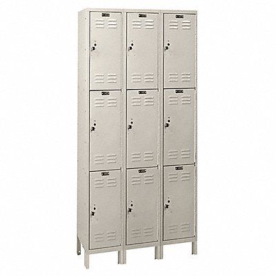 Wardrobe Locker Audit Trail Storage None Frame Assembled Assembled Number of Tiers 3 Number of Units Wide 3 Door Type Louvered Frame Material Thickness 16 ga Includes Number Plates Yes Locker Color Tan Lock Type Padlock Hasp Overall Depth 18 in Overall Height 78 in Overall Width 36 in Handle Type Pull Locker Finish Powder Coated Locker Material Steel Number of Lockers 9 Opening Depth 17 in Opening Height 22 1/4 in Opening Width 9 1/4 in