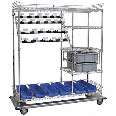 Specialized Medical Supply Cart Assembled/Unassembled Unassembled Material Steel Load Capacity 1 200 lb Caster Wheel Dia 5 in Caster Wheel/Tread Material Polyurethane Caster/Wheel Configuration (2) Swivel (2) Swivel with Brake Caster Brake Type Side Pedal Brake Cabinet Color Silver Drawer Color Gray Number of Drawers 2 Number of Shelves 5 Shelf Length 60 in Shelf Width 24 in