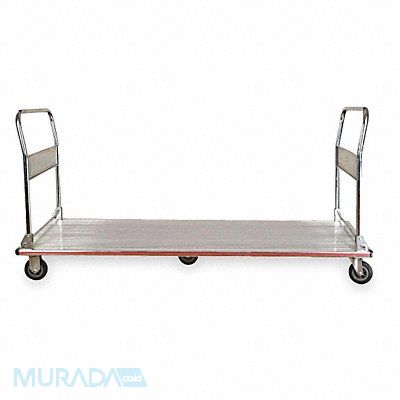 Aluminum-Deck Platform Truck Load Capacity 660 lb Overall Height 37 1/2 in Overall Length 60 in Overall Width 18 in Deck Construction Solid Deck Material Aluminum Deck Height 7 in Deck Length 60 in Deck Width 18 in Deck Surface Ribbed Frame Material Aluminum Handle Type Folding Side Panel Type No Side Panels Number of Platforms 1 Color Silver