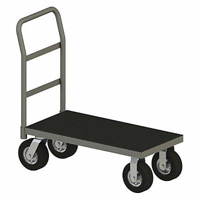 Steel-Deck Platform Truck Load Capacity 1 200 lb Overall Height 38 1/2 in Overall Length 63 5/8 in Overall Width 36 3/8 in Deck Construction Solid Deck Material Steel Deck Finish/Coating Powder Coated Deck Gauge 12 ga Deck Height 11 1/2 in Deck Length 60 in Deck Width 36 in Deck Surface Non-Slip Frame Material Steel Frame Finish/Coating Powder Coated Handle Type Removable Raised Lip Style Flush Side Panel Type No Side Panels Number of Platforms 1 Color Gray