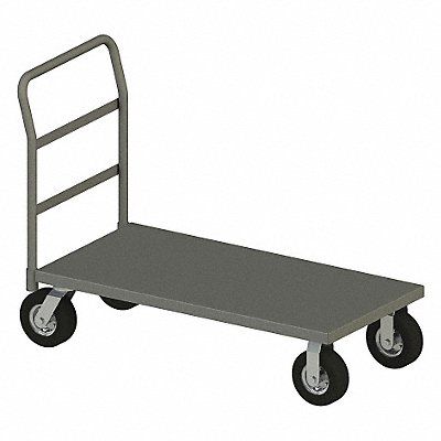 General Purpose Steel-Deck Platform Truck Load Capacity 1 200 lb Overall Height 38 1/2 in Overall Length 75 5/8 in Overall Width 36 3/8 in Deck Construction Solid Deck Material Steel Deck Finish/Coating Powder Coated Deck Gauge 12 ga Deck Height 11 3/8 in Deck Length 72 in Deck Width 36 in Deck Surface Smooth Frame Material Steel Frame Finish/Coating Powder Coated Handle Type Removable Raised Lip Style Flush Side Panel Type No Side Panels Number of Platforms 1 Color Gray