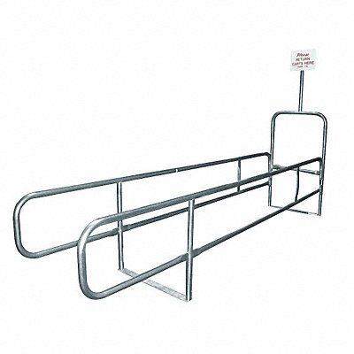 Single Wide Cart Corral Galvanized 14 ga Steel Material Side Rail Height 36 in Side Rail Length 13 ft 8 in Width between Rails 32 in Sign Pole Height 8 ft Overall Height 8 ft Overall Length 14 ft Overall Width 32 in Sign Message Please Return Cart Here. Thank You.