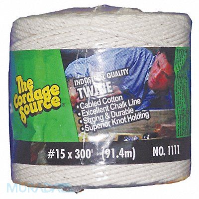 Rope Item Tying and Bundling Rope Rope Sub-Category Twine Rope Diameter 1/16 in Rope Material Cotton Rope Strand Count 3 Rope Length 300 ft Working Load Limit 4 lb Rope Core Strand Count 0 Rope Construction Twisted Tensile Strength 40 lb Rope Core No White Rope Type Static Package Type Spool