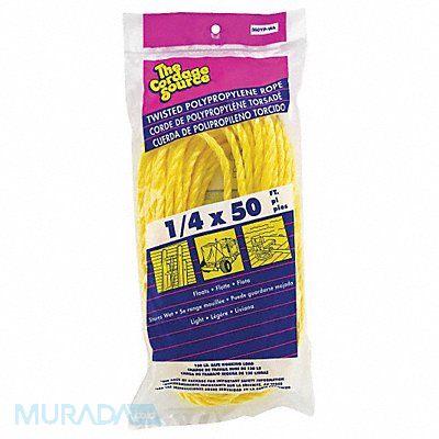 Rope Item General Utility Rope Rope Sub-Category All Purpose Rope Diameter 1/4 in Rope Material Polypropylene Rope Strand Count 3 Rope Length 50 ft Working Load Limit 90 lb Rope Core Strand Count 0 Rope Construction Twisted Tensile Strength 900 lb Rope Core No Yellow Rope Type Static Package Type Bag