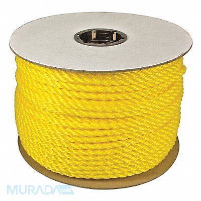 Rope Item General Utility Rope Rope Sub-Category All Purpose Rope Diameter 1 1/4 in Rope Material Polypropylene Rope Strand Count 3 Rope Length 600 ft Working Load Limit 1 850 lb Rope Core Strand Count 0 Rope Construction Twisted Tensile Strength 18 488 lb Rope Core No Yellow Rope Type Static Package Type Spool