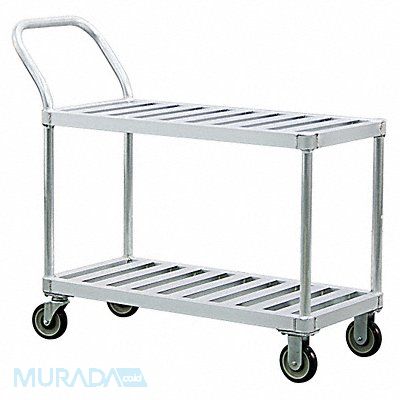 Utility Cart Load Capacity 1 000 lb Aluminum Material 10 ga Gauge Mill Finish Silver Color Overall Length 48 in Overall Width 19 in Number of Shelves 2 Capacity per Shelf 800 lb Distance Between Shelves 20 in Shelf Length 41 in Shelf Width 19 in Standards NSF Includes Push Handle Handle Height 41 1/2 in Top Shelf Height 30 in Assembled/Unassembled Assembled