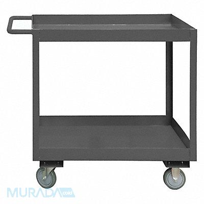 Utility Cart with Deep Lipped Metal Shelves Load Capacity 1 200 lb Steel Material 14 ga Gauge Powder Coated Finish Gray Color Overall Length 42 1/4 in Overall Width 18 in Number of Shelves 2 Capacity per Shelf 600 lb Distance Between Shelves 24 1/4 in Shelf Length 36 in Shelf Width 18 in Includes Tubular Push Handle Handle Height 37 5/8 in Top Shelf Height 37 5/8 in Assembled/Unassembled Assembled