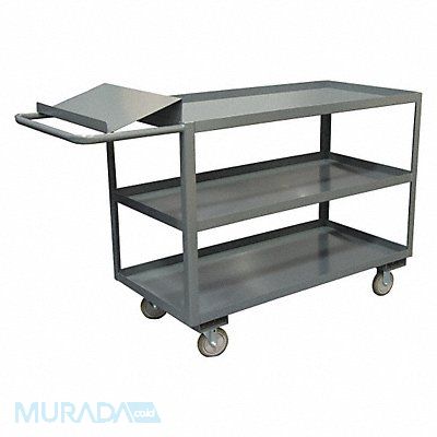 Order-Picking Utility Cart with Lipped Metal Shelves Load Capacity 1 200 lb Steel Material 14 ga Gauge Powder Coated Finish Gray Color Overall Length 51 in Overall Width 30 1/2 in Number of Shelves 3 Capacity per Shelf 400 lb Distance Between Shelves 12 5/8 in Shelf Length 48 in Shelf Width 24 in Includes Built-In Writing Surface Distance Between Middle and Bottom Shelf 12 5/8 in Distance Between Top and Middle Shelf 12 5/8 in Handle Height 37 3/8 in Top Shelf Height 37 5/8 in