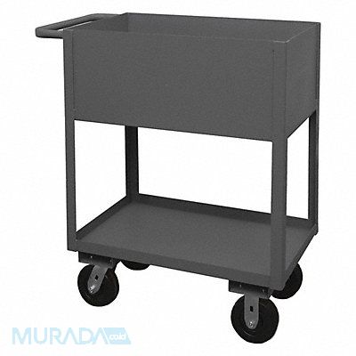 Utility Cart with Deep Lipped Metal Shelves Load Capacity 3 600 lb Steel Material 14 ga Gauge Powder Coated Finish Gray Color Overall Length 36 in Overall Width 18 1/2 in Number of Shelves 2 Capacity per Shelf 1 800 lb Distance Between Shelves 16 1/2 in Shelf Length 30 in Shelf Width 18 in Includes Tubular Push Handle Handle Height 39 in Top Shelf Height 39 in Assembled/Unassembled Assembled