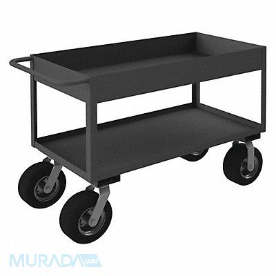 Utility Cart with Deep Lipped Metal Shelves Load Capacity 1 200 lb Steel Material 14 ga Gauge Powder Coated Finish Gray Color Overall Length 42 1/4 in Overall Width 24 1/4 in Number of Shelves 2 Capacity per Shelf 600 lb Distance Between Shelves 14 3/4 in Shelf Length 36 in Shelf Width 24 in Handle Height 36 in Top Shelf Height 36 in Assembled/Unassembled Assembled