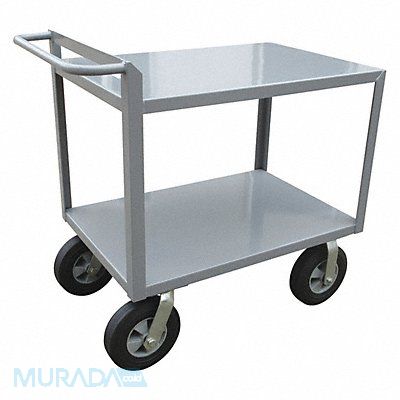 Utility Cart with Flush Metal Shelves Load Capacity 1 500 lb Steel Material 12 ga Gauge Powder Coated Finish Gray Color Overall Length 42 in Overall Width 24 in Number of Shelves 2 Capacity per Shelf 750 lb Distance Between Shelves 19 1/2 in Shelf Length 36 in Shelf Width 24 in Includes Raised Offset Handle Top Shelf Height 39 in Assembled/Unassembled Assembled