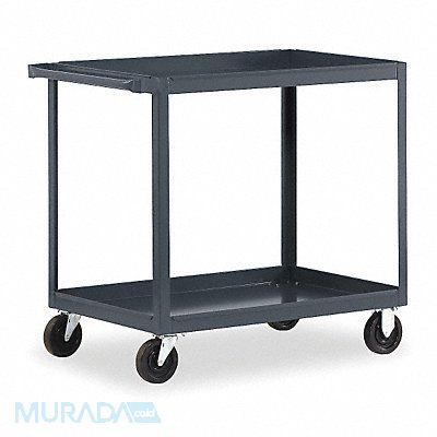 Utility Cart with Lipped Metal Shelves Load Capacity 1 200 lb Steel Material 14 ga Gauge Powder Coated Finish Gray Color Overall Length 42 in Overall Width 24 1/2 in Number of Shelves 2 Capacity per Shelf 600 lb Distance Between Shelves 26 3/4 in Shelf Length 36 in Shelf Width 24 in Handle Height 37 5/8 in Top Shelf Height 37 5/8 in Assembled/Unassembled Assembled