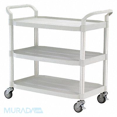 Dual-Handle Utility Cart with Lipped Plastic Shelves Number of Shelves 3 Lip Style 4-Sided Lipped Load Capacity 400 lb Shelf Length 36 1/4 in Shelf Width 20 1/4 in Top Shelf Height 34 5/8 in Distance Between Shelves 10 7/8 in Distance Between Top and Middle Shelf 10 7/8 in Distance Between Middle and Bottom Shelf 10 7/8 in Handle Type (2) Raised Handle Height 39 3/4 in Caster Brake Type Face Contact Brake Caster Wheel/Tread Material Thermoplastic Rubber Caster Wheel Dia 4 in