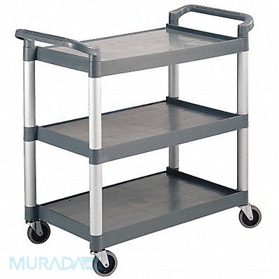 Dual-Handle Utility Cart with Lipped Plastic Shelves Number of Shelves 3 Lip Style 4-Sided Lipped Load Capacity 265 lb Shelf Length 24 1/2 in Shelf Width 16 1/2 in Top Shelf Height 36 in Distance Between Shelves 13 in Distance Between Top and Middle Shelf 13 in Distance Between Middle and Bottom Shelf 13 in Handle Type (2) Raised Handle Height 36 in Caster Brake Type No Brake Included Caster Wheel/Tread Material Rubber Caster Wheel Dia 4 in Caster/Wheel Configuration (4) Swivel